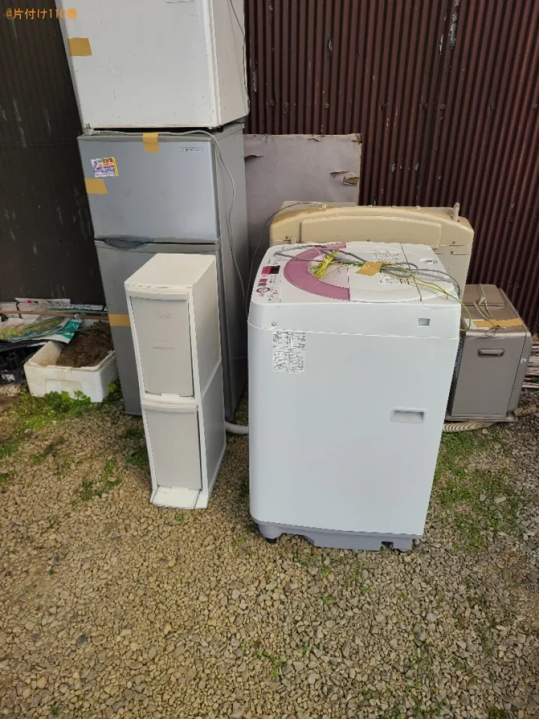 | 担当のコメント | 冷蔵庫、洗濯機、扇風機等の処理にお困りのお客様からご相談いただきました。見積り額がご予算内だったことがご依頼の決め手になったようです。片付け110番では、最短即日お伺いさせていただきます。不用品にお困りの際はまたいつでもご相談ください。 |